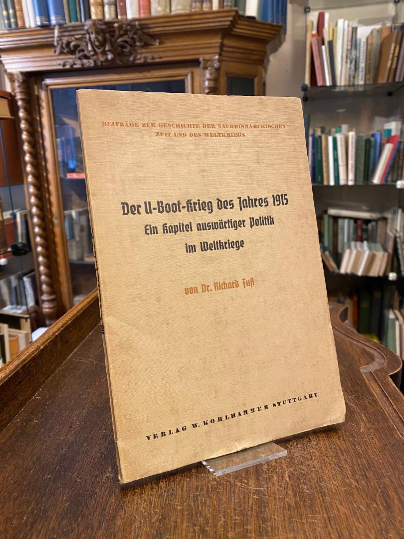 Fuss, Richard: Der U-Boot-Krieg des Jahres 1915 : Ein Kapitel auswärtiger Politik im Weltkriege. Stuttgart, Verlag von W. Kohlhammer, 1936. 8° (24x16), (VI), 96 S., OKart (Brosch), angestaubt, unbeschnitten/unaufgeschnitten, [= Beiträge zur Geschichte der nachbismarckischen Zeit und des Weltkrieges: 33 : herausgegeben von Fritz Kern und Hans Hallmann],