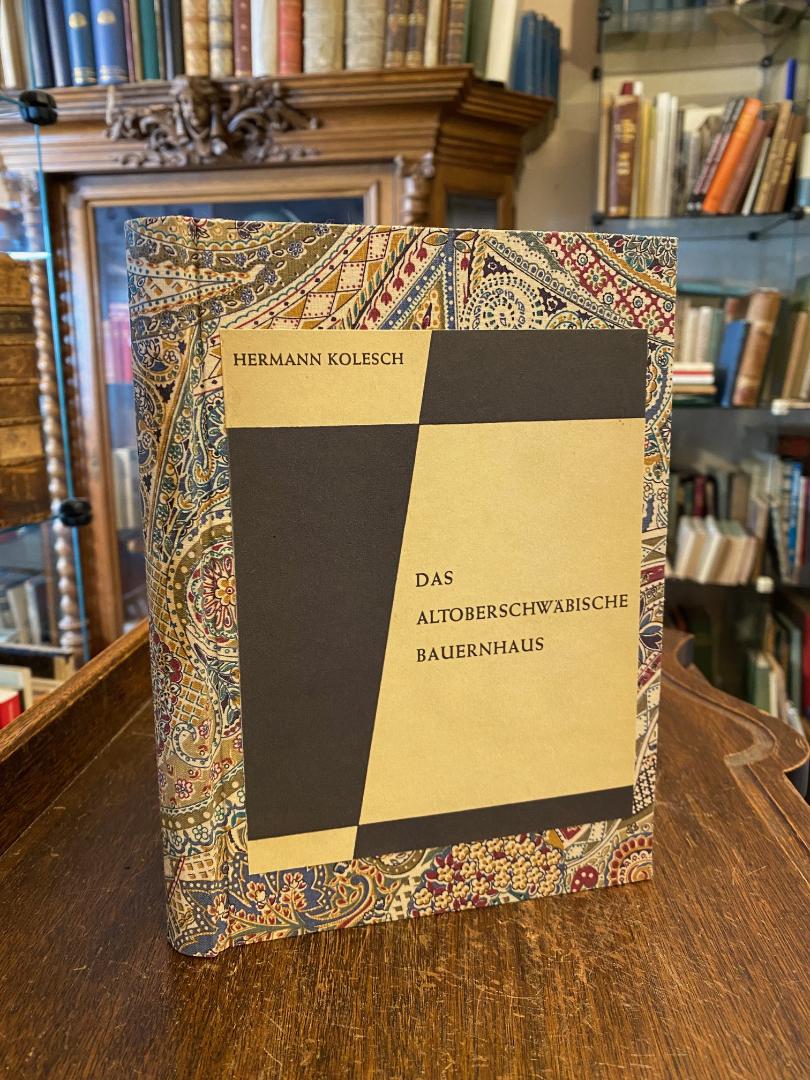 Kolesch, Hermann: Das altoberschwäbische Bauernhaus. Nach einem Nachwort von Adolf Schahl (25 Jahre Bauernhausforschung und das altoberschwäbische Bauernhaus). Tübingen, Tübinger Vereinigung für Volkskunde / Magstadt, Bissinger (Druck), 1967. 8° (22x15), 312 S., mit etwa 190 fotograf Aufnahmen, Grund- und Aufrisse, Privatbindung: gemusterter Ln mit montiertem OU, leicht gebräunt, sauber und wohlerhalten, [= Volksleben; 17 : Untersuchungen des Ludwig-Uhland-Institus der Universität Tübingen im Auftrag der Tübinger Vereinigung für Volkskunde herausgegeben von Hermann Bausinger unter Mitarbeit von Rudolf Schenda und Herbert Schwedt], verso Titel mit handschriftlicher Eintragung ’Erhalten vom Herausgeber / Prof. Bausinger u. Dr. Schwedt / Tüb. Sommer 1970`.–