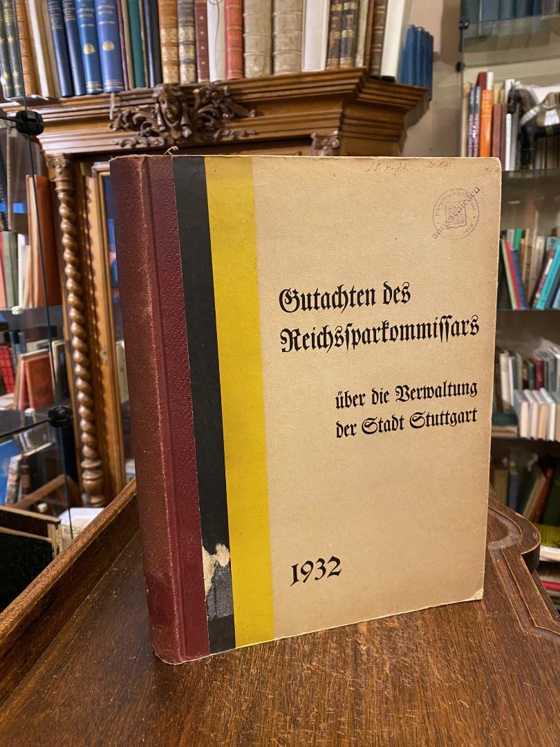 Stuttgart. – Gutachten des Reichssparkommissars über die Verwaltung der Stadt Stuttgart. Stuttgart, Ernst Klett Verlag, 1932. 8°, XV, 372 S., etwas Abrieb durch entferntes Rückenetikett, Archivstempel auf Deckel/Vorsatz/Titelblatt, sosnt fest und sauber,