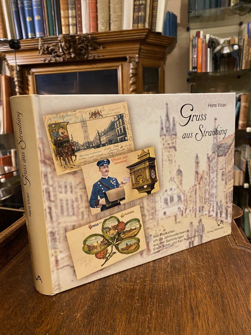 Straubing. – Vicari, Hans: Gruss aus Straubing : (Alte Postkarten um die Jahrhundertwende aus den Sammlungen Erwin Böhm und karl Neuberger). 1. Aufl., Straubing, Verlag Attenkofer, 1997. 4°quer (20x26), 379 S., mit zahlr. historischen Abb. im Textteil, sowie 283 farbig bebilderte und beschriebene Ansichtskarten, ill OPbd, nahezu ungelesen, schönes gepflegtes Exemplar,