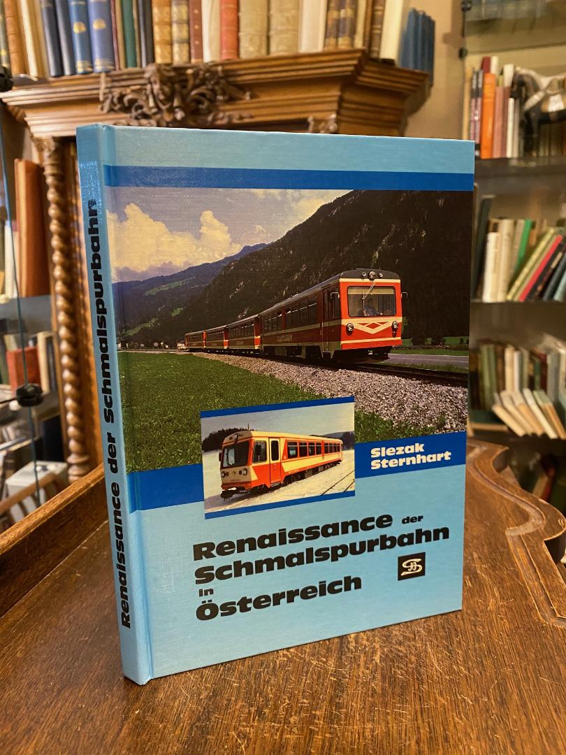 Slezak, Josef Otto / Sternhart, Hans: Renaissance der Schmalspurbahn in Österreich. Wien, Verlag Josef Otto Slezak, 1986. 4° (25x18), 176 S., mit zahlr. 160 fotograf Aufnahmen, Risszeichnungen, Faksimiles, Tab., fotoill OPbd, Kopfschnitt etwas angestaubt, sonst sauber und wohlerhalten,