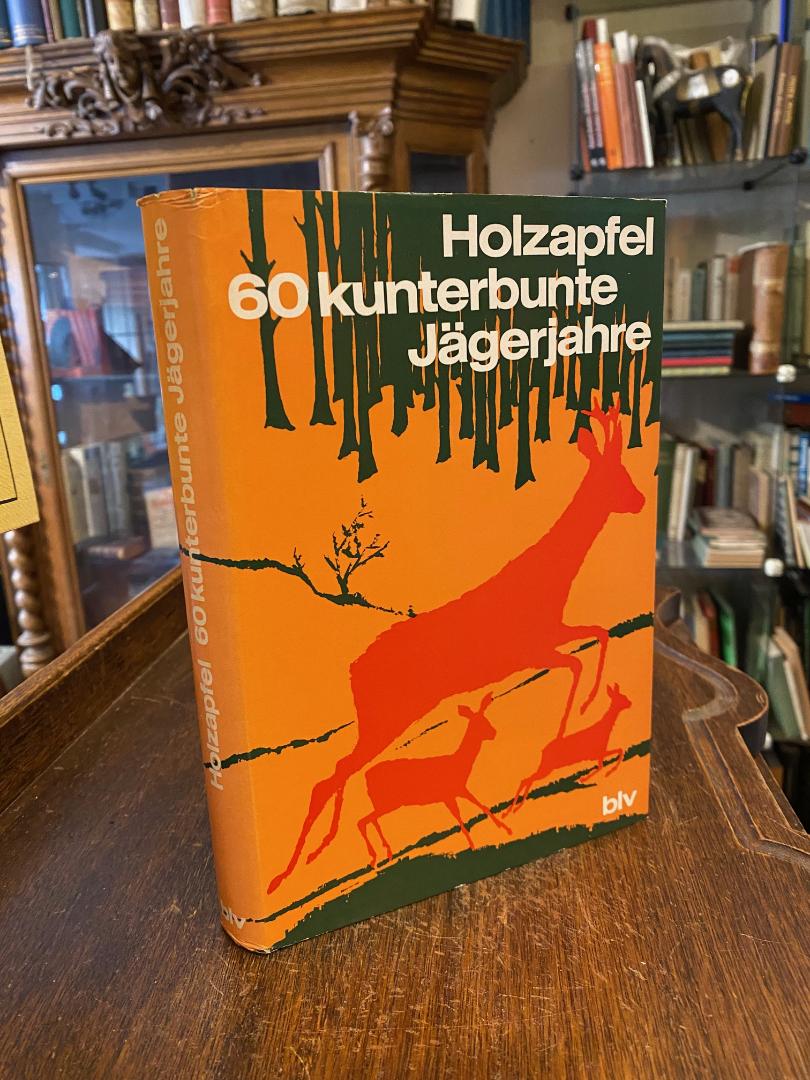 Holzapfel, Alexander: 60 kunterbunte Jägerjahre. München, BLV Bayerischer Landwirtschaftsverlag, (1965). 8° (22x15), 212 S., 2 Bl., mit 27 (davon 8 farb) fotograf Aufnahmen auf Tafeln, Oln mit ill OU, Papier leicht gebräunt, kaum gelesen, schönes gepflegtes Exemplar,