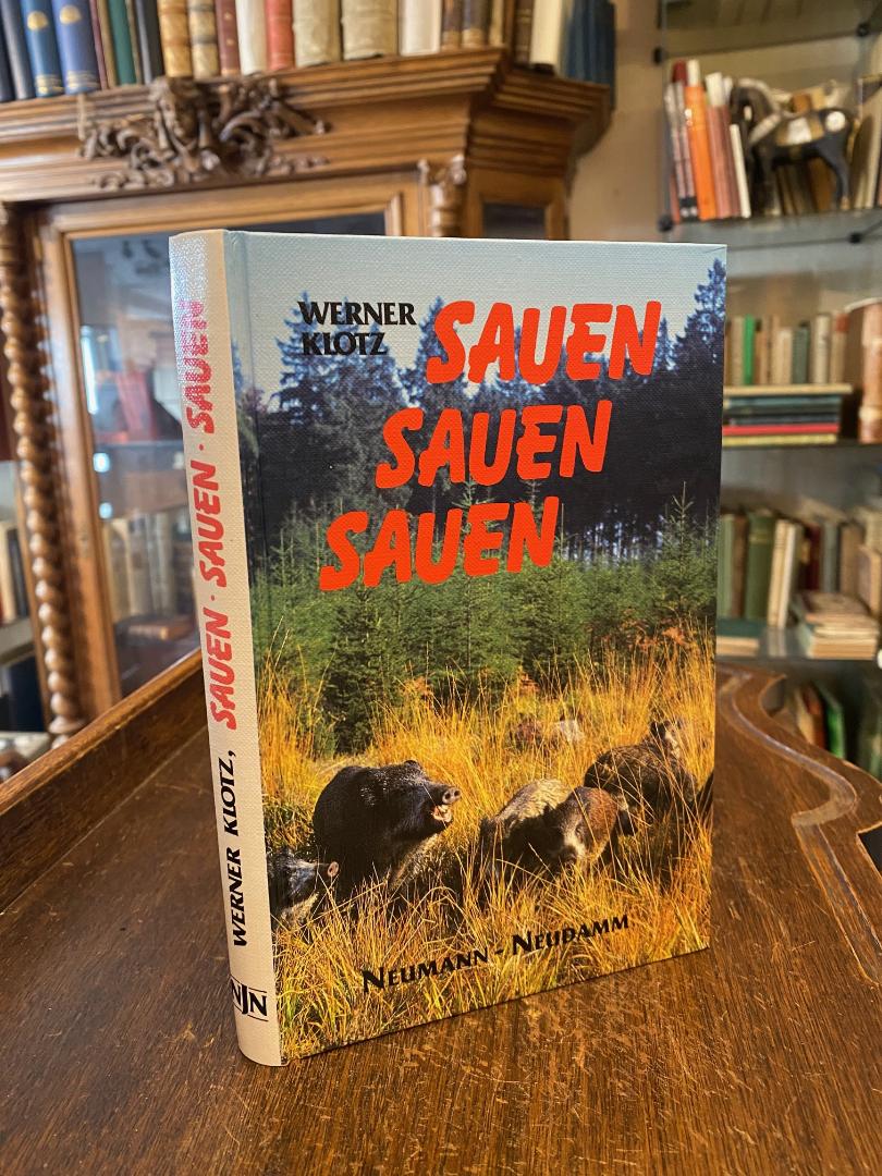 Klotz, Werner: Sauen Sauen Sauen. 2. Aufl., Melsungen, Verlag J. Neumann-Neudamm, (1989) Folgeauflage 1996. 8° (22x14), 156 S., mit zahlr. teils farb fotograf Aufnahmen auf Tafeln, fotoill OPbd (Linson), nahezu ungelesen, schönes gepflegtes Exemplar,
