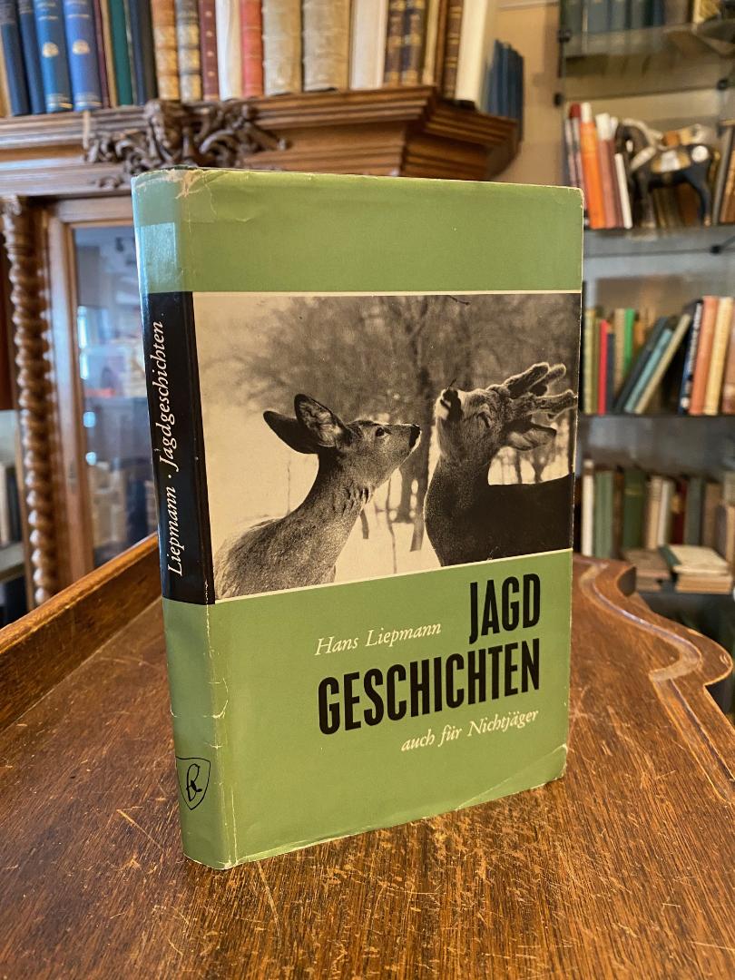 Liepmann, Hans: Jagdgeschichten auch für Nichtjäger. Giessen, Brühl’scher Verlag (vormals Hugo Bermühler Verlag, Berlin), (1964). 8° (21x13), 258 S., 1 Bl., grüner OKldr mit goldTitel mit fotoill OU, Umschlag etwas angerändert, Block leicht schief, fest und sauber,