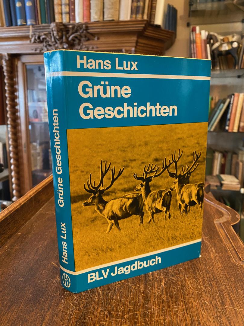 Lux, Hans: Grüne Geschichten. München; Basel; Wien, BLV Verlagsgesellschaft, (1970). 8° (22x15), 215 S., gelber Oln mit fotoill OU, Umschlag rückseitig mit etwas Abrieb, Papier etwas gebräunt, sauber und wohlerhalten, Forstamtsleiter im Bergischen Land und Autor des Nachsuchebuches ‚Auf der Rotfährte‘.–