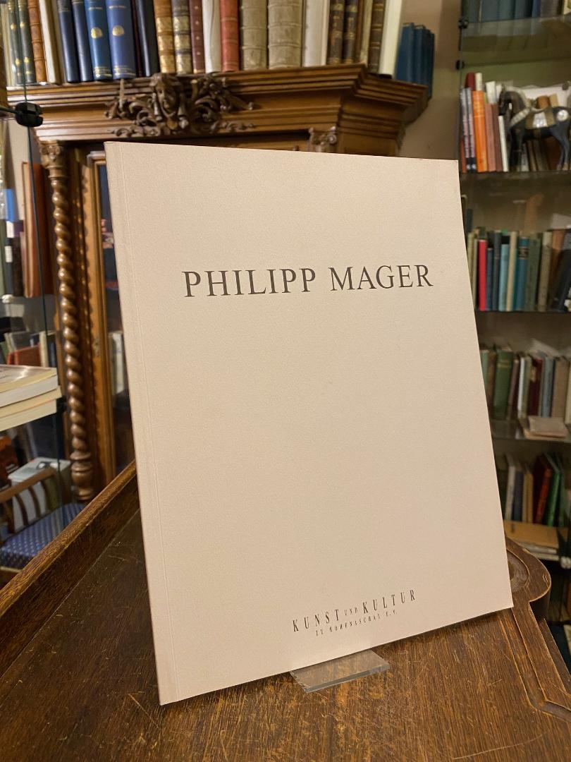 Mager, Philipp (*1966). – Rothe, Friedrich (Vorwort) / Fußmann, Klaus (Text): Philipp Mager : Pastell – Malerei – Graphik : (Publikation zur Ausstellung Kunst und Kultur zu Hohenaschau, Aschau, 23. März bis 29. April 2001). Aschau, Kunst und Kultur zu Hohenaschau, 2001. 4° (30x23), [14] Bl., mit 10 ganzseitigen WerkAbb., OKart (Brosch) mit Titeldruck, minimal angestaubt, fest sauber und gepflegt, auf Titel mit Widmung an ein Münchner Sammlerehepaar vom Künstler SIGNIERT, Aschau 23.03.01.–