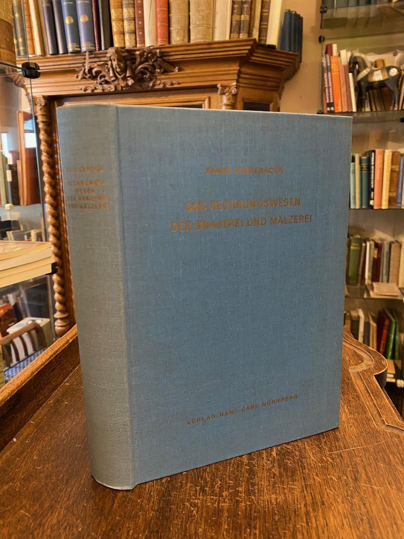 Kinnebrock, [Franz] (TH Müncnen Weihenstephan): Das Rechnungswesen der Brauerei und Mälzerei. Nürnberg, Verlag Hans Carl, 1965. 4° (25x18), XXXi, 693 S., mit 110 und 44 Abb., Deckeltasche: 16 S. Heft, blauer Oln mit goldTitel, kleiner Name auf Vorsatz, vereinzelte dünne Bleistiftunterstreichungen, sonst gutes gepflegtes Exemplar,