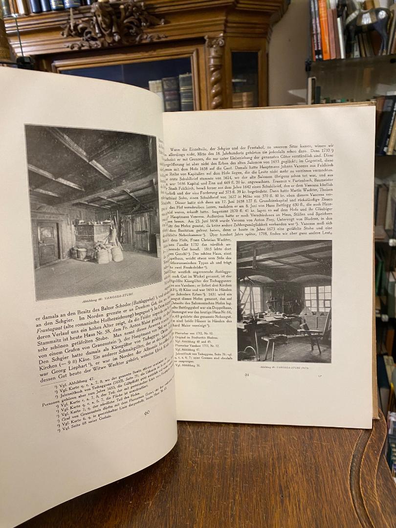 Barbisch, Hans: Vandans : Eine Heimatkunde aus dem Tale Montafon in Vorarlberg. Unter Mitarbeit von Adolf Helbok (Ortsgeschichte) und Leo Jutz (Mundart). Herausgegeben vom Vorarlberger Landesmuseum in Bregenz mit Unterstützung des Österreichischen Museums für Volkskunde in Wien. Innsbruck, Universitätsverlag Wagner, 1922. 4° (31x24), XV, 379 S., mit 93 Abb., OHln, minimale Kantenbestossung, leicht gebräunt, sauber und gepflegt,