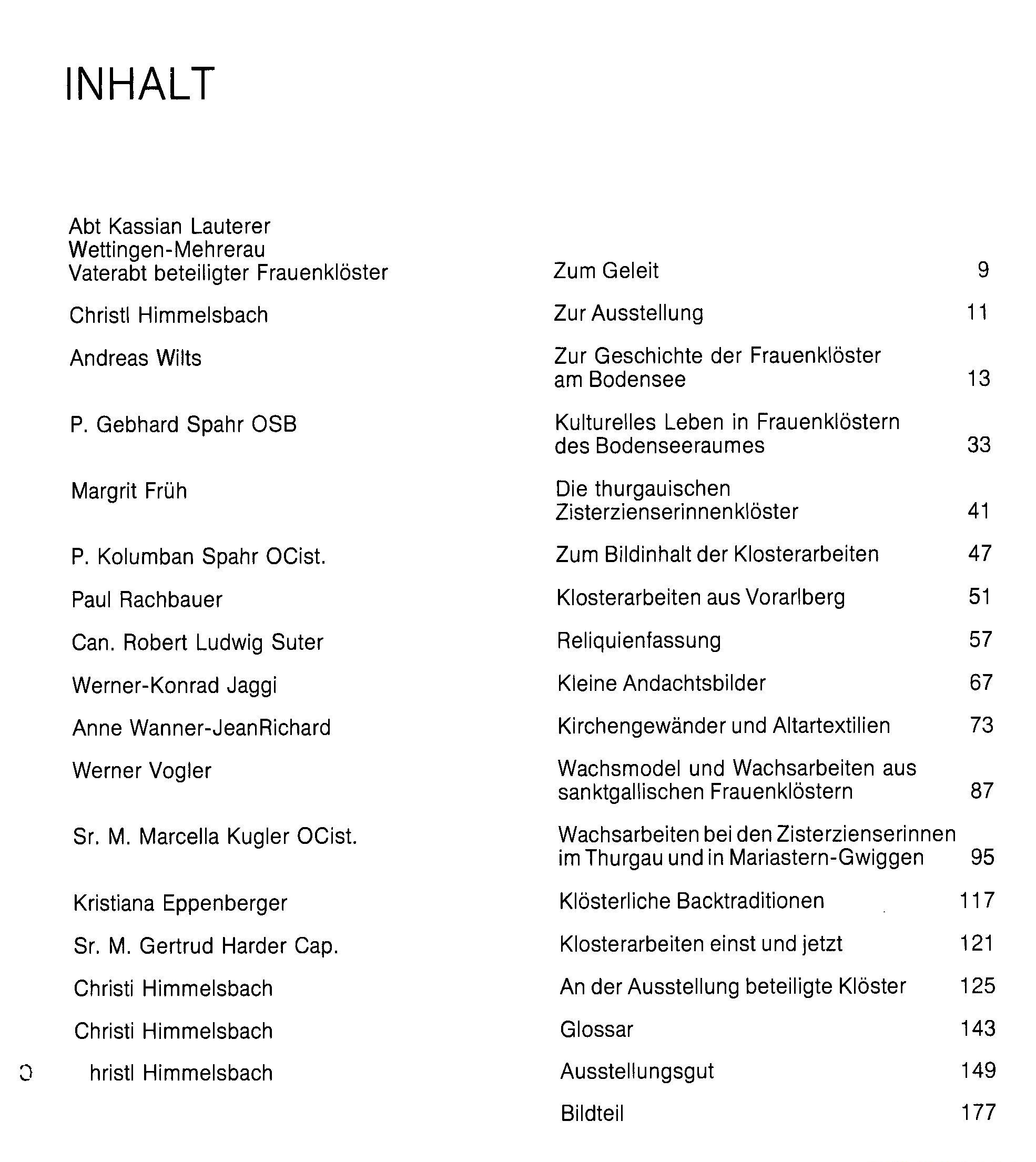 Rachbauer, Paul (Schriftl): Klosterarbeiten aus dem Bodenseeraum : (Publikation zur Ausstellung Historisches Museum St. Gallen, 11. Januar bis 23. Februar 1986; Kartause Ittingen, Warth/TG, 16. März bis 1. Juni 1986; Heimatmuseum Insel Reichenau, Reichenau-Mittelzell, 16. Juni bis 31. August 1986; Vorarlberger Landesmuseum, Bregenz, 20. September bis 16. November 1986). Bregenz, Internationaler Arbeitskreis der Ausstellung ‚Klosterarbeiten aus dem Bodenseeraum‘ / Dornbirn, Vorarlberger Verlagsanstalt (Druck), 1986. 8° (20x19), 200 S., mit zahlr. Abb., OKart (Brosch), nahezu ungelesen, schönes gepflegtes Exemplar,