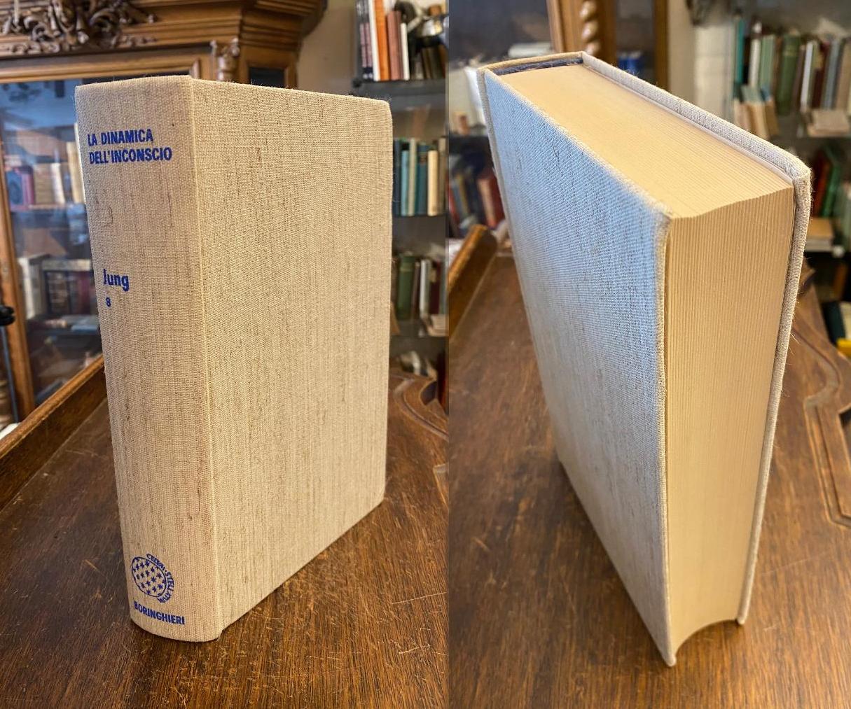 Jung, Carl Gustav (1875-1961). – Opere di C. G. Jung : Vol 8: La Dinamica dell’Inconscio (pubblicato nel 1976). vol 8 (da 19), Torino, Editore Boringhieri, 1980. 4° (25x16), 605 p,, con 42 illustrationi di testo et 44 tavole su carta artistica, legatura editore in tela con dorso in rilievo blu, senza sovracoverta, leggermente ingiallita, con sottili sottolineature a matita sotile, buona copia, [= C.G. Jung : opere in 19 volumi; vol 8],