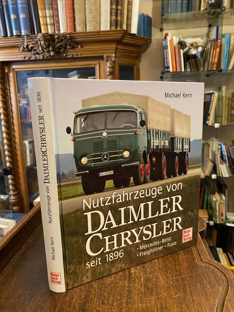 Kern, Michael: Nutzfahrzeuge von Daimler Chrysler seit 1896 : (Mercedes-Benz – Freightliner – Fuso). 1. Aufl., Stuttgart, Motorbuch Verlag, 2005. 4° (27x24), 293 S., 1 Bl., mit zahlr. dokumentarischen Aufnahmen, Faksimiles, graph. Darst., fotograf Aufnahmen, fotoill OPbd, Papier am oberen Rand ganz leicht gewellt, ohne Gebrauchsspuren, wohl ungelesen,