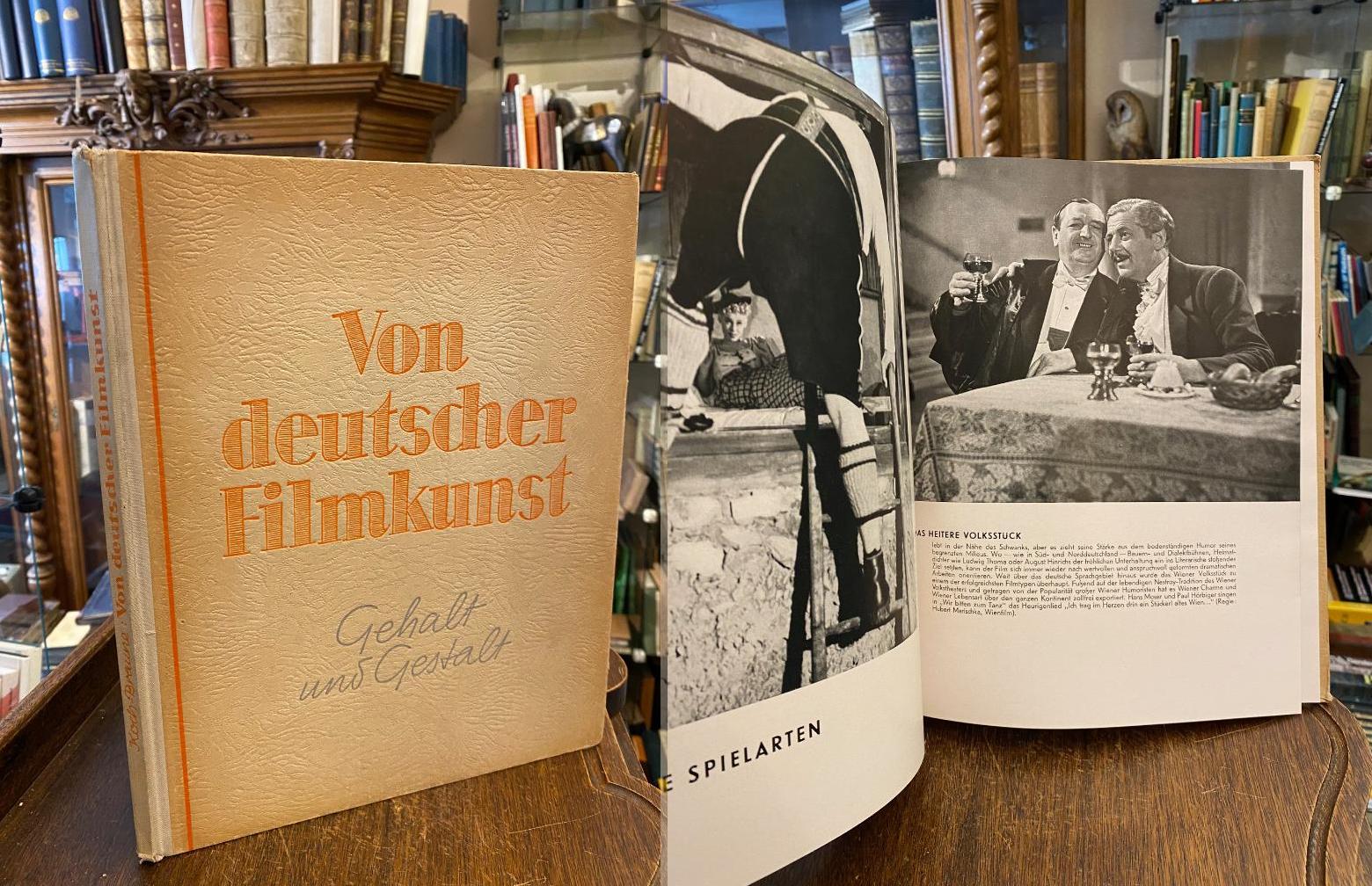Koch, Heinrich / Braune, Heinrich: Von Deutscher Filmkunst : Gehalt und Gestalt. Berlin, Verlag Hermann Scherping, 1943. 4° (31x25), [110] S., 16 S. Text sowie 90 fotograf Aufnahmen aus Filmen mit Beschreibung, OHln mit TitelPrägung, Ecken minimalst bestossen, Einband etwas gebräunt, kleiner Namensstempel auf Vorsatz, kaum gelesen, sauber und wohlerhalten,