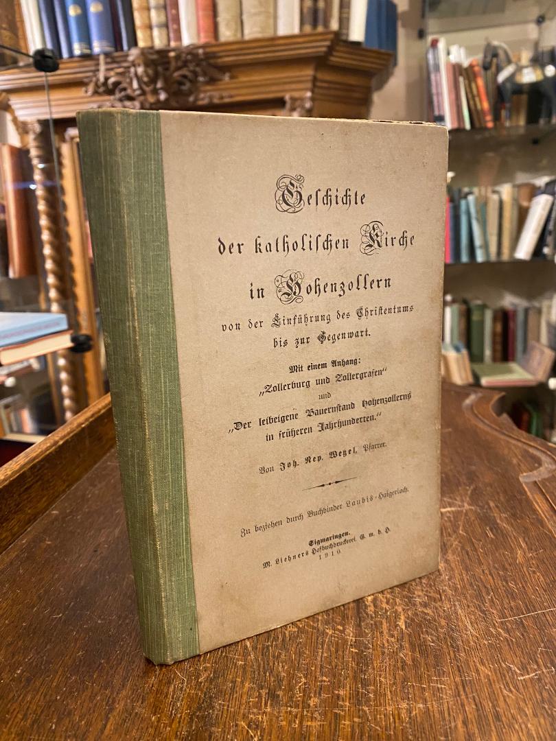Wetzel, Johann Nepomuk : Pfarrer: Geschichte der katholischen Kirche in Hohenzollern von der Einführung des Christentums bis zur Gegenwart. Mit einem Anhang: ‚Zollerburg und Zollergrafen‘ und ‚Der leibeigene Baunernstand Hohenzollern in früheren Jahrhunderten‘. Sigmaringen, M. Liehner’s Hofbuchdruckerei, 1910. 8° (20x14), VI, 180 S., OHln, etwas angestaubt, vereinzelt gering fleckig, gutes Exemplar,