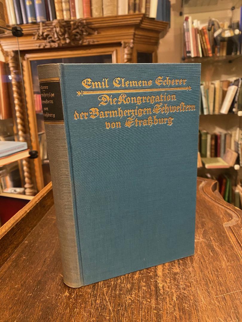 Scherer, Emil Clemens: Die Kongregation der Barmherzigen Schwestern von Straßburg. Saaralben (Lothringen), Colportage Catholique, 1930. 8° (23x15), XX, 492 S., mit zahlr. Textabb. und 1 Porträttafel auf stärkerem Papier, grüner Oln mit goldPrägung, Rücken etwas aufgehellt, ohne Gebrauchsspuren, wohl ungelesen, frisch, im Schuber, [= Forschungen zur Küchengeschichte des Elsass; 2 : herausgegeben von der Gesellschaft für elsässische Kirchengeschichte zu Straßburg],