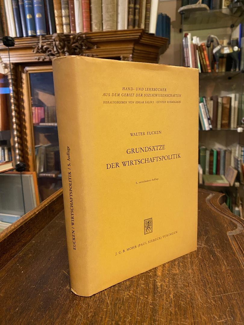Eucken, Walter: Grundsätze der Wirtschaftspolitik. 5., unveränderte Aufl. (10. Tsd.), Tübingen, J.C.B. Mohr (Paul Siebeck), 1975. gr8° (24x16), XIX, 396 S., Oln mit OU, ohne Gebrauchsspuren, wohl ungelesen, [= Hand- und Lehrbücher aus dem Gebiet der Sozialwissenschaften : herausgegeben von Edgar Salin und Günter Schmölders],