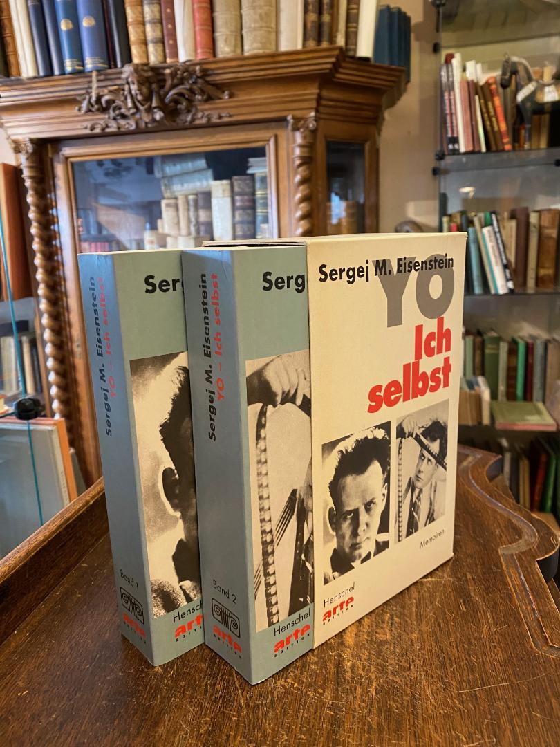 Eisenstein, Sergej M. (1898-1948). – Klejman, Naum (Hrsg): Sergej M. Eisenstein : Yo – Ich selbst : Memoiren [in zwei Bänden]. Herausgegeben, mit Vorwort und Anmerkungen vrsehen von Naum Klejman, 2. Aufl., (ergänzte Neuauflage), 2 Bände im Schuber, Berlin, arte-edition im Henschel Verlag, 1998. 8° (22x13), 1248 S., 2 Bl., durchgehend paginiert, mit zahlr. dokumentarischen Aufnahmen und Faksimiles im Text und auf Farbtafeln, ill OKart (Brosch) im Schuber, ohne Gebrauchsspuren, wohl ungelesen, frisch,
