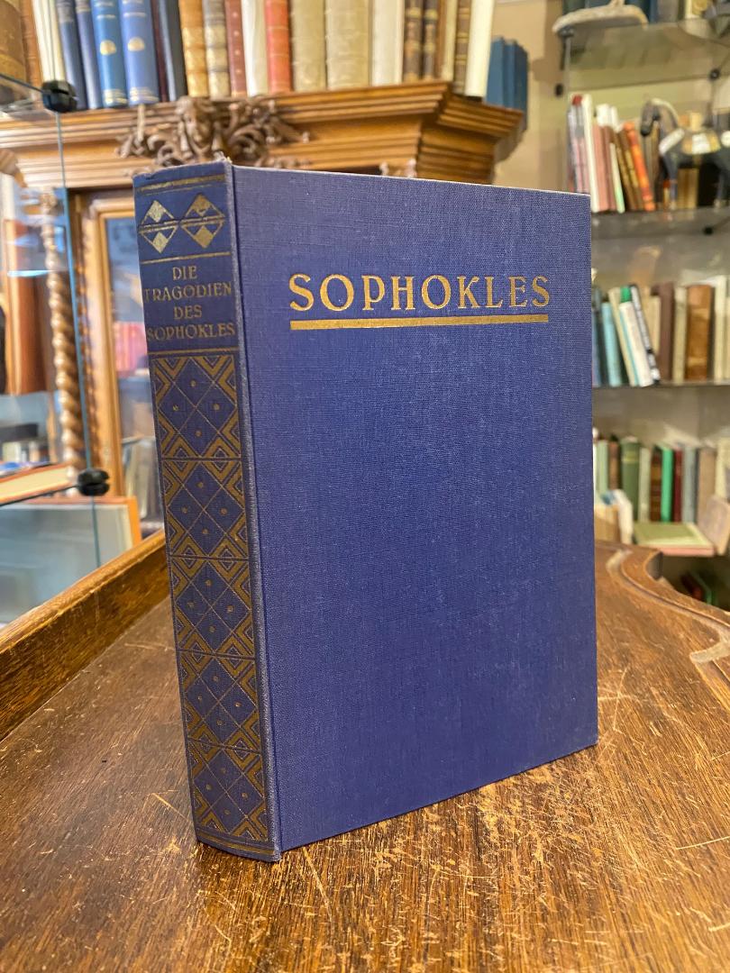 Sophokles (497/496v-406/405v). – Müller, [Hermann Friedrich] (Hrsg): Die Tragödien des Sophokles. In den Versmaßen der Urschrift ins Deutsche übersetzt von Karl Bruch. Neue Ausgabe mit Einleitung und Erläuterungen von H.F. Müller. Heidelberg, Carl Winter’s Universitätsbuchhandlung, [1912]. 8° (19x12), LI, 380 S., mit Frontispiz, blauer Oln gewachst mit reicher goldPrägung, Schnitt minimal angestaubt, sauber und wohlerhalten, Titel- und Einbandzeichnung von Franz Hein.–