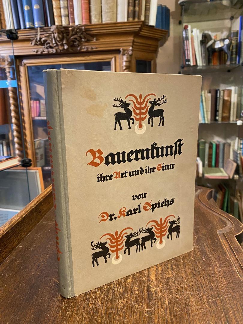 Spiehs, Karl: Bauernkunst ihre Art und ihr Sinn : Grundlinien einer Geschichte der unpersönlichen Kunst. Wien, Österreichischer Bundesverlag, 1925. 8°, 296 S., mit 149 Abb., OHln, kaum gelesen, sauber und wohlerhalten, [= Deutsche Hausbücherei : herausgegeben von der Volksbildungsstelle des Bundesministeriums für Unterricht],