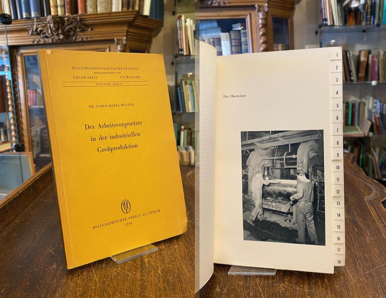 Müller, Carlo-Maria: Der Arbeitsvorgesetzte in der industriellen Großproduktion. Zürich, Polygraphischer Verlag, 1956. 8° (23x16), 104 S., mit 18 fotograf Aufnahmen, OKart (Brosch), winziger Randfehlstelle, sauber und wohlerhalten, [= Staatswissenschaftliche Studien; NF 25 : herausgegeben von Edgar Salin und V. F. Wagner / Basler Dissertationen],