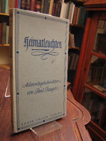 Jaeger, Paul: Heimatleuchten. Adventsgeschichten. 11.-15. Tsd., Heilbronn, Eugen Salzer Verlag, 1949. 8°, 95 S., OPbd, NaV, sauber und wohlerhalten, enthält: Heimatleuchten.– Das Adventsnärrle.– Mutting.– Am Geheimnis hin.